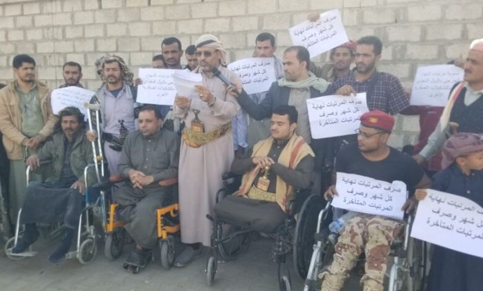 جرحى القوات الحكومية يواصلون اعتصامهم في مارب