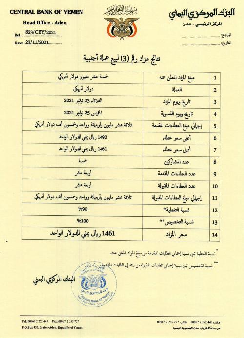 إعلان نتائج المزاد رقم 3 من بيع العملة الأجنبية