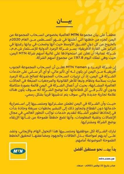 الحكومة ترفض قرار شركة إم تي إن الخروج من اليمن