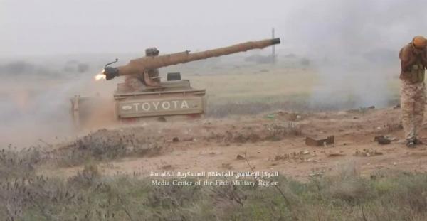 مصدر عسكري اكد أن القوات الحكومية  قصفت بالمدفعية اليوم الثلاثاء  تجمعات للمليشيات  شرقي مديرية حيران  ما أسفر عن سقوط قتلى وجرحى في صفوف المليشيات وتدمير آليات تابعة لها.