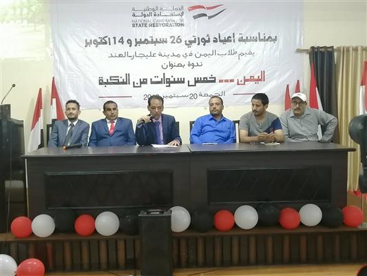 نظم طلاب اليمن في عليجار ـ الهند ندوة بعنوان " اليمن.. خمس سنوات من النكبة "، في اطار الحملة الوطنية لاستعادة الدولة.