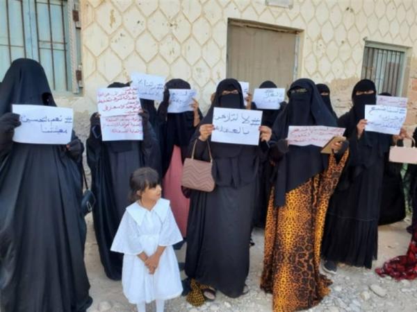 تظاهرت عشرات النساء بمحافظة المهرة تنديدا باستمرار انهيار العملة وارتفاع أسعار المواد الغذائية .