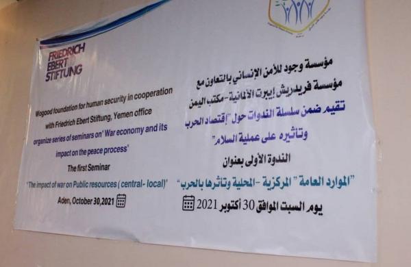 ودعا المشاركون في ندوة في عدن حول اقتصاد الحرب وتأثيره على عملية السلام والتي تنظمها مؤسسة وجود للأمن الإنساني ومؤسسة فريدريش إيبرت الألمانية إلى تفعيل دور الرقابة والمحاسبة ورصد الجرائم الاقتصادية والضغط على أطراف الحرب بتوقف ممارسات عسكرة الاقتصاد والتركيز على تحصيل الموارد بشكل جيد ومحاسبة الجهات المتسببة في عرقلة التحصيل.