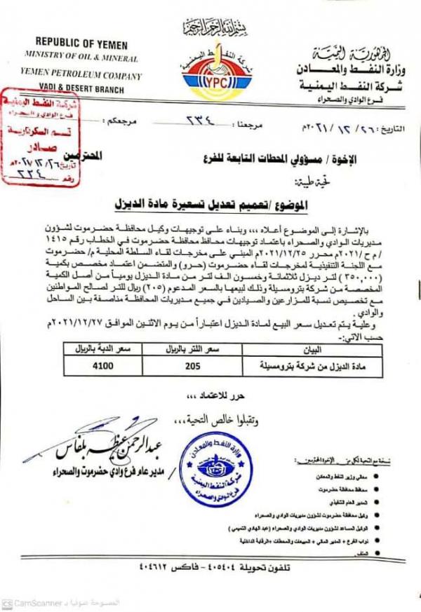 حيث أقرت شركة النفط بالمحافظة بيع سعر اللتر الواحد لمادة الديزل بـ 205 ريال ليصبح سعر الدبة الـ 20 لتر بـ 4100 ريال ...