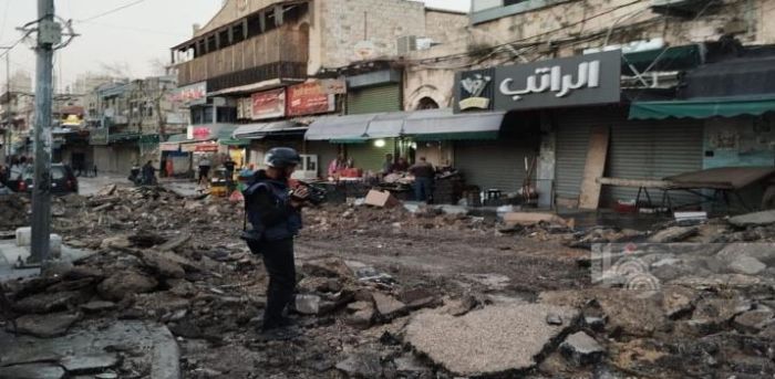 وأفادت وكالة وفا، بأن جرافات الاحتلال دمرت محيط ميدان جمال عبد الناصر وسط المدينة، والبنية التحتية وشبكة المياه الرئيسية، وطالت عمليات التدمير أيضا، الأرصفة ومداخل المحلات التجارية في المنطقة.