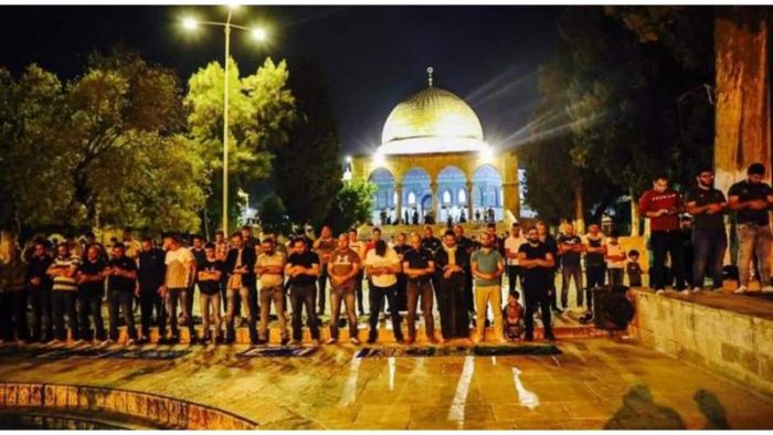أدى 85 ألف مصل فلسطينى، مساء اليوم الجمعة، صلاتى العشاء والتراويح فى المسجد الأقصى المبارك بمدينة القدس المحتلة.