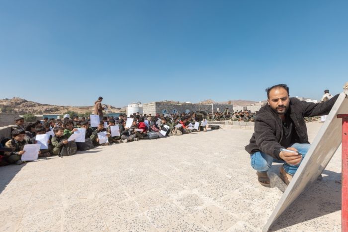 ولم يجد ملايين الأطفال في اليمن خيارًا سوى التعلم في ظروف غير ملائمة، كالفصول الدراسية المكتظة، والخيام، والمدارس التي تفتقر إلى أبسط المرافق.